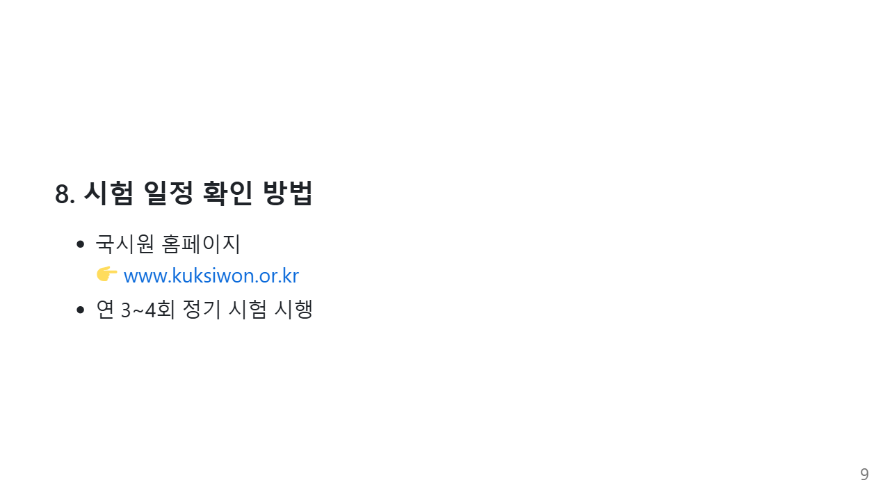 - 필기시험: 객관식 35문제 (21문제 이상 맞으면 합격)