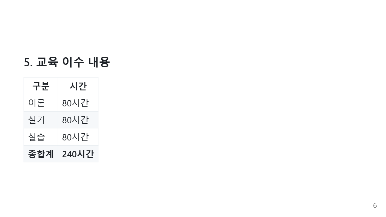 💬 240시간이란? 하루 8시간씩 수업을 들으면, 약 한 달 반~두 달 정도면 충분히 교육을 끝낼 수 있어요