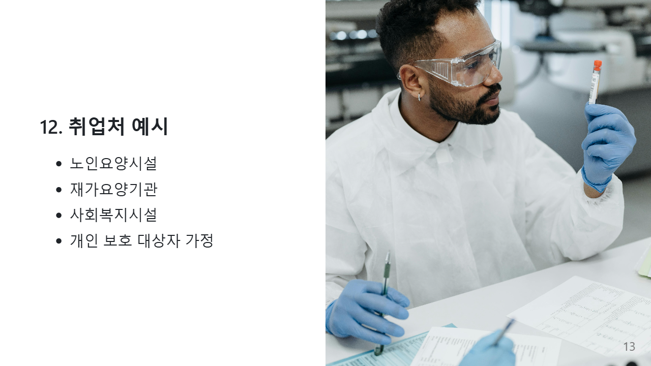 자격증 취득 후에는 다음과 같은 곳에서 일할 수 있어요.